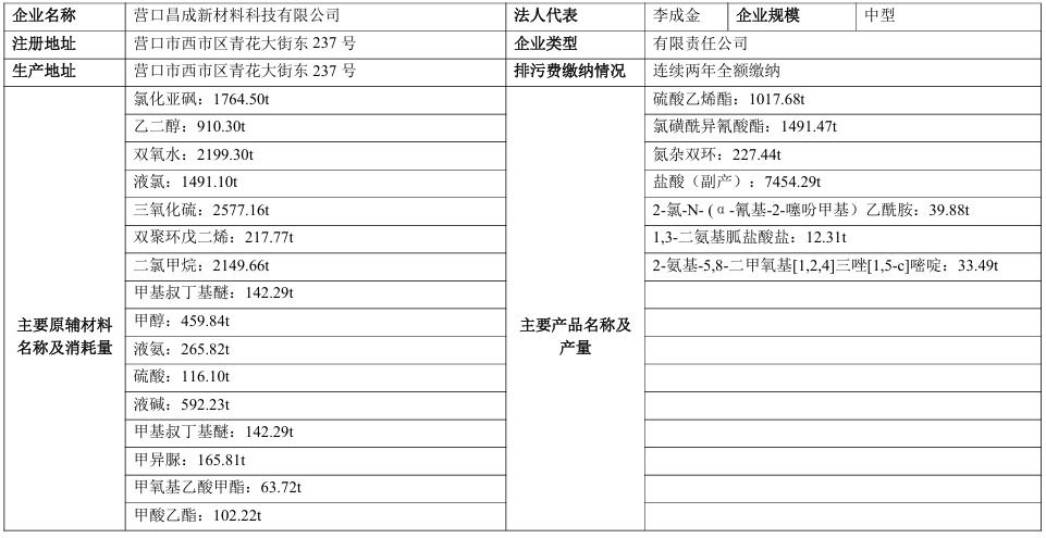 營(yíng)口昌成新材料科技有限公司清潔生產(chǎn)信息公示